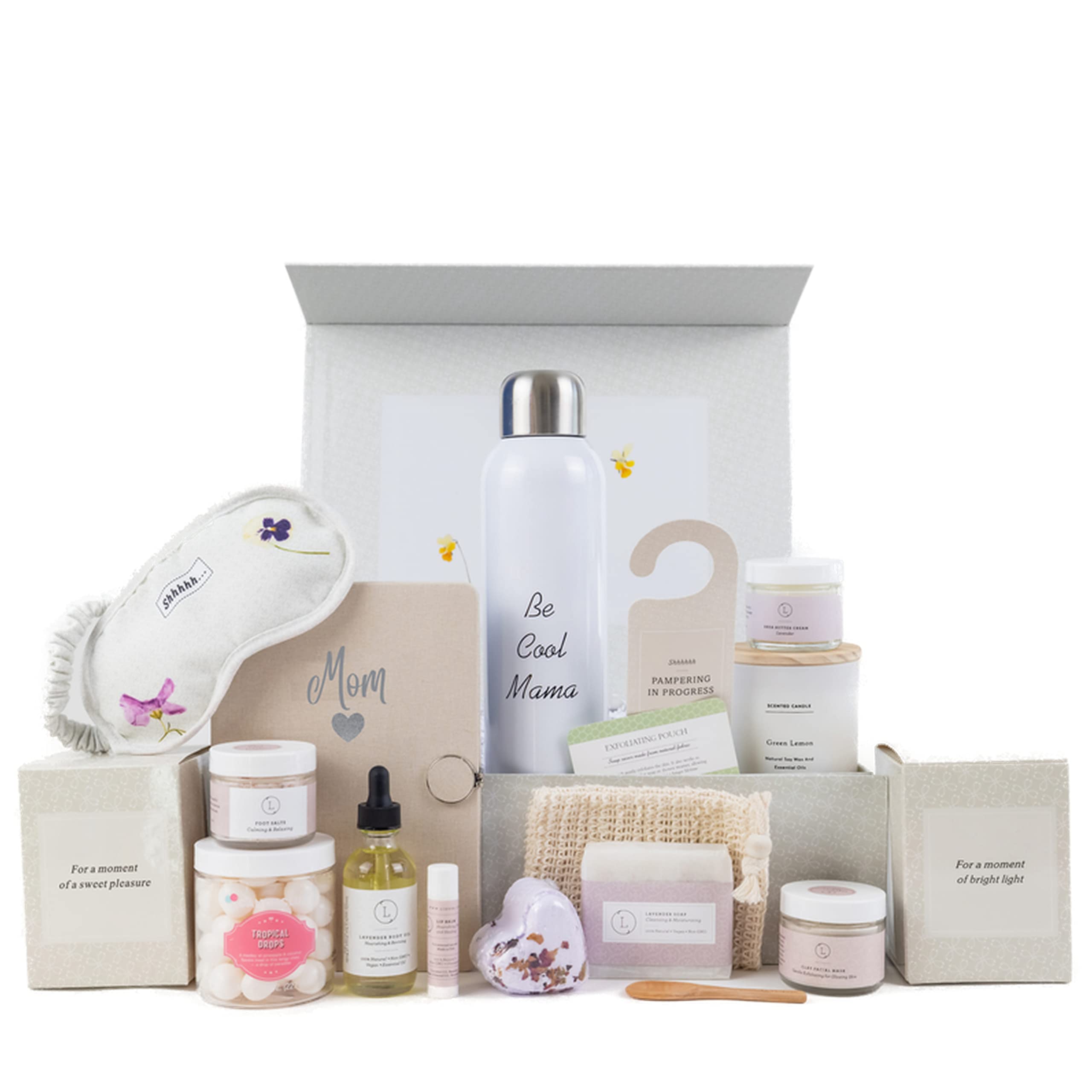 According to our experts, the Spa Gift Box by Lizush is an excellent choice for your mom. This luxurious care package includes 15 handmade pieces to help your mom relax and unwind.